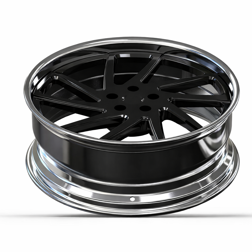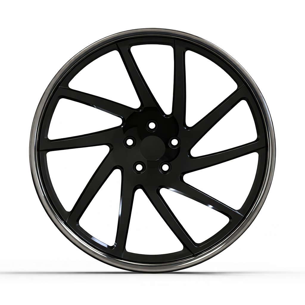Finish / Color Black Spokes + Polished Lip Brushed, Matte, Candy, Chrome, or custom RAL colors
